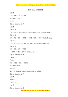 Câu 1. Tính 125 − 200 A. −75 B. 75 C. −85 D. 85