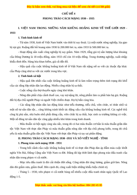 ệ đ xe ể m chi ti t ế (có l i ờ gi i ả ) CHỦ Đ 4 Ề PHONG TRÀO CÁCH M N Ạ G 1930 – 1935 I. VI T Ệ NAM TRONG NH N Ữ G NĂM KH N Ủ G HO N