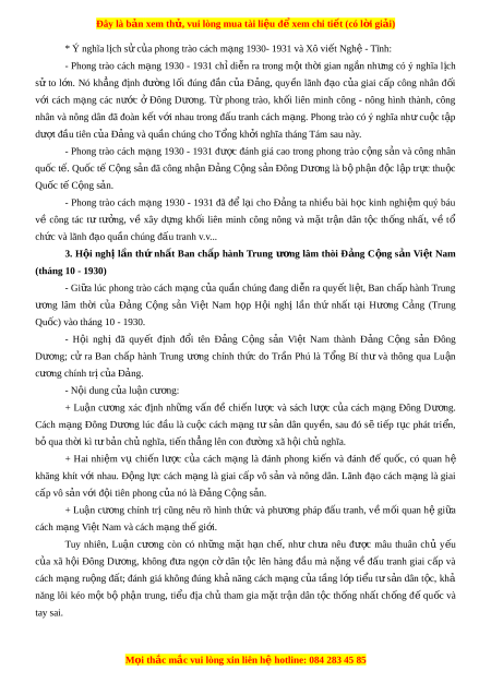 ữ lúc phong trào cách m ng ạ c a ủ qu n ầ chúng đang di n ễ ra quy t ế li t ệ , Ban ch p ấ hành Trung ư ng ơ lâm th i ờ c a ủ Đ ng ả C ng ộ s n ả Vi t ệ Nam h p ọ H i ộ nghị l n ầ thứ nh t ấ t i ạ Hư ng ơ C ng ả (Trung Qu c ố ) vào tháng 10 - 1930. - H i ộ nghị đã quy t ế đ nh ị đ i ổ tên Đ ng ả C ng ộ s n ả Vi t ệ Nam thành Đ ng ả C ng ộ s n ả Đông Dư ng; ơ cử ra Ban ch p ấ hành Trung ư ng ơ chính th c ứ do Tr n ầ Phú là T ng ổ Bí th ư và thông qua Lu n ậ cư ng ơ chính trị c a ủ Đảng. - N i ộ dung c a ủ luận cư ng: ơ + Luận cư ng ơ xác đ nh ị nh ng ữ v n ấ đề chi n ế lư c ợ và sách lư c ợ c a ủ cách m ng ạ Đông Dư ng. ơ Cách mạng Đông Dư ng ơ lúc đ u ầ là cu c ộ cách m ng ạ tư s n ả dân quy n, ề sau đó s ẽ ti p ế t c ụ phát tri n, ể b qua ỏ th i ờ kì t b ư n c ả h nghĩ ủ a, ti n t ế h ng l ẳ ên con đư ng ờ xã h i ộ ch nghĩ ủ a. + Hai nhi m ệ vụ chi n ế lư c ợ c a ủ cách m ng ạ là đánh phong ki n ế và đánh đế qu c ố , có quan hệ khăng khít v i ớ nhau. Đ ng ộ l c ự cách m ng ạ là giai c p ấ vô s n ả và nông dân. Lãnh đ o ạ cách m ng ạ là giai cấp vô sản v i ớ đ i ộ tiên phong c a ủ nó là Đ ng C ả ng ộ s n. ả + Luận cư ng
