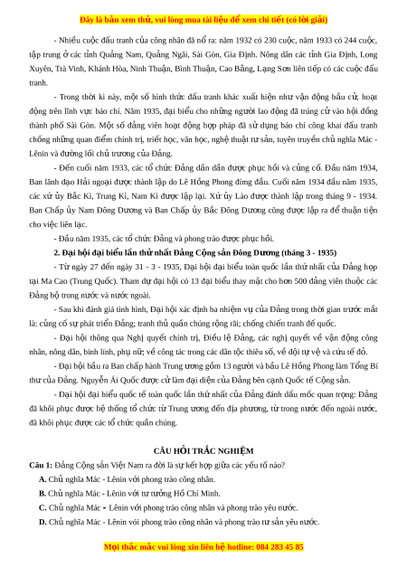 Câu 1: Đ ng C ng s n Vi t Nam ra đ i là s k t h p gi a các y u t nào?ả ộ ả ệ ờ ự ế ợ ữ ế ố