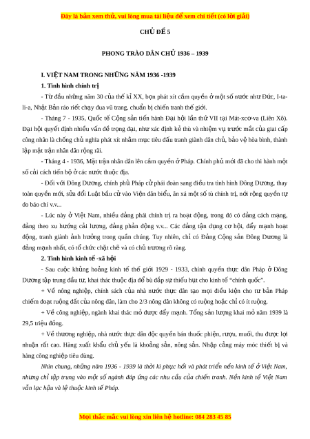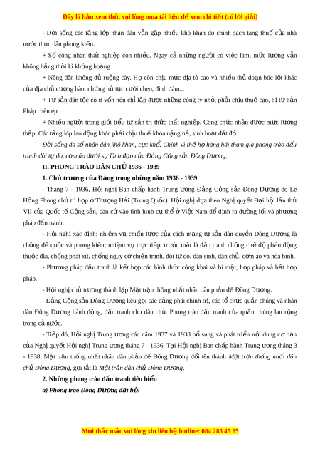 II. PHONG TRÀO DÂN CH 1936 - 1939 Ủ 1. Ch tr ủ ư n ơ g c a Đ ủ n ả g trong nh n ữ g năm 1936 - 1939 - Tháng 7 - 1936, H i ộ nghị Ban ch p ấ hành Trung ư ng ơ Đ ng ả C ng ộ s n ả Đông Dư ng ơ do Lê H ng ồ Phong chủ trì h p ọ ở Thư ng ợ H i ả (Trung Qu c ố ). H i ộ nghị d a ự theo Nghị quy t ế Đ i ạ h i ộ l n ầ thứ VII c a ủ Qu c ố tế C ng ộ s n,