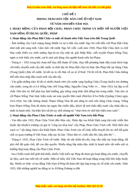 ệ đ xe ể m chi ti t ế (có l i ờ gi i ả ) CHỦ Đ 2 Ề PHONG TRÀO DÂN T C Ộ DÂN CH Ủ Ở VI T Ệ NAM TỪ NĂM 1919 Đ N Ế NĂM 1925 I. HO T Ạ Đ N Ộ G C A Ủ PHAN B I
