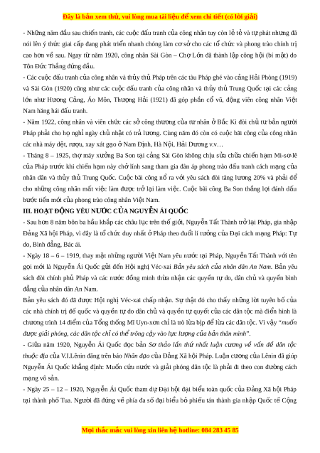ạ thanh niên để trang bị chủ nghĩa Mác - Lênin cho h . ọ CÂU H I Ỏ TR C Ắ NGHI M Ệ Câu 1: Nh ng ữ sự ki n ệ nào trên thế gi i ớ có nh ả hư ng ở l n ớ đ n ế cách m ng ạ Vi t ệ Nam từ sau Chi n ế tranh thế gi i ớ thứ nhất? A. S t ự hành công c a ủ Cách mạng tháng Mư i ờ Nga (tháng 11 – 1917). B. Nguyễn Ái Qu c ố đ a ư yêu sách đ n H ế i