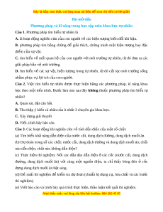 Đây là bản xem th , vu ử i lòng mua tài li u ệ đ xe ể m chi ti t (c ế ó l i ờ gi i ả ) Bài m đ ở ầu Phư ng pháp và k ơ ĩ năng trong h c t ọ p m ậ ôn khoa h c t ọ nhi ự ên Câu 1. Phư ng ơ pháp tìm hi u ể t nhi ự ên là A. là ho t ạ đ ng nghi ộ ên c u c ứ a ủ con ngư i ờ về các hi n t ệ ư ng bi ợ n đ ế i ổ khí h u. ậ B. phư ng ơ pháp tìm b ng ằ ch ng ứ để gi i ả thích, ch ng ứ minh m t ộ hi n ệ tư ng ợ hay đ c ặ đi m ể c a ủ s v ự t ậ . C. tìm hi u ể về m i ố quan hệ c a ủ con ngư i ờ v i ớ môi trư ng ờ t ự nhiên, t ừ đó đ a ư ra các gi i ả pháp b o v ả ệ môi trư ng. ờ D. tìm hi u ể về các sự v t ậ , hi n ệ tư ng ợ trong tự nhiên, t ừ đó c i ả t o ạ môi trư ng ờ s ng ố nh m ằ ph c v ụ l ụ i ợ ích c a ủ con ngư i ờ .