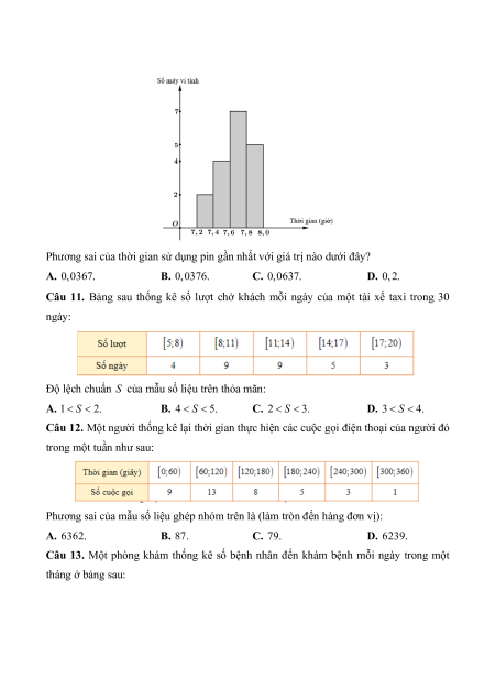 Câu 12. Một người thống kê lại thời gian thực hiện các cuộc gọi điện thoại của người đó trong một tuần như sau: