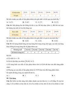 Câu 1. Một mẫu số liệu ghép nhóm có độ lệch chuẩn bằng 4 thì có phương sai bằng A. 2. B. 2. C. 16. D. 16.