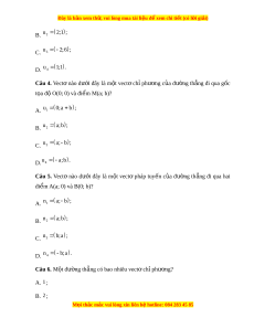 Câu 3. Vectơ nào dư i ớ đây là m t ộ vectơ chỉ phư ng ơ c a ủ đư ng ờ th ng ẳ đi qua hai đi m ể A(-3; 2) và B(1; 4). A. u 1;2 ; 1 M i