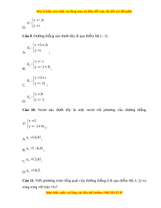 Câu 9. Đ ng th ng nào d i đây đi qua đi m M(1; -1).ườ ẳ ướ ể