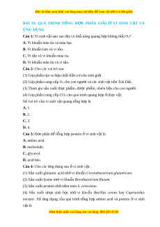BÀI 19: QUÁ TRÌNH T N Ổ G H P Ợ , PHÂN GI I Ả Ở VI SINH V T Ậ VÀ N Ứ G D N Ụ G Câu 1: Vi sinh v t ậ nao sau đây có kh năng ả quang h p không t ợ h i ả O2?