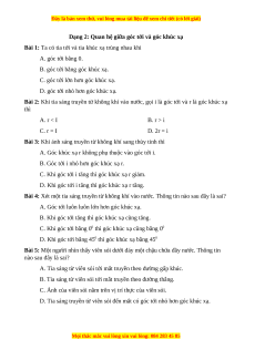 Bài 1: Ta có tia tới và tia khúc xạ trùng nhau khi A. góc tới bằng 0.