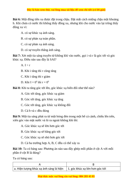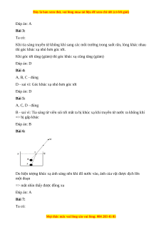 D - sai vì: Góc khúc xạ nhỏ hơn góc tới Đáp án: D Bài 5: A, C, D - đúng