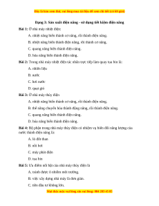 Dạng 3: Sản xuất điện năng - sử dụng tiết kiệm điện năng