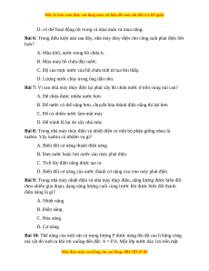 Bài 2: Trong nhà máy nhiệt điện tác nhân trực tiếp làm quay tua bin là: A. nhiên liệu B. nước C. hơi nước D. quạt gió
