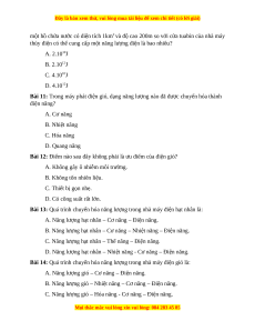 Bài 11: Trong máy phát điện gió, dạng năng lượng nào đã được chuyển hóa thành điện năng? A. Cơ năng B. Nhiệt năng C. Hóa năng D. Quang năng