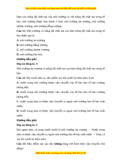 â tan đong vai trò quan tr ng ọ nh t â trong quy đ nh ị t c ô độ v n â chuy n ê cac chât qua mang. Câu 10: D a ư vao n ng ô độ ch t â tan c a ủ môi trư ng ơ so v i ơ n ng ô độ ch t â tan trong t bao, m ê ôi trư ng ơ đư c chi ơ a thanh A. 2 lo i a . B. 3 lo i a . C. 4 lo i a . D. 5 lo i a . Hư ng d ớ ẫn gi i ả : Đáp án đúng là: B M i ọ thắc m c