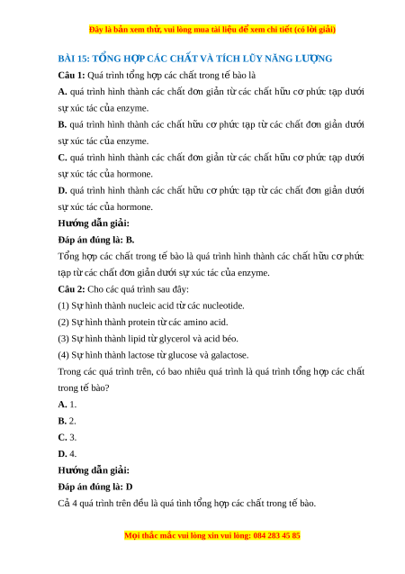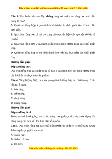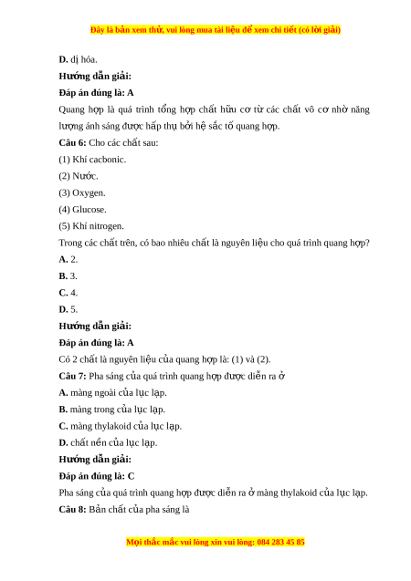 Đây là bản xem th , vu ử i lòng mua tài li u ệ đ xe ể m chi ti t ế (có l i ờ gi i ả ) D. dị hóa. Hư ng ớ d n gi ẫ i ả : Đáp án đúng là: A Quang h p ợ là quá trình t ng ổ h p ợ ch t ấ h u ư cơ từ các ch t ấ vô cơ nhờ năng lư ng ánh s ợ áng đư c ợ h p t ấ h b u i ơ h s ê c ă t quang h ô p. ợ
