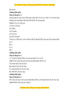 C. màng thylakoid c a l ủ c u l p. a D. chất n n c ề a l ủ c u l p. a Hư ng ớ d n gi ẫ i ả : Đáp án đúng là: C Pha sáng c a ủ quá trình quang h p đ ợ ư c ợ di n