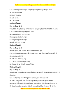 ê nh thành nên carbohydrate. D. S d ư ng năng u lư ng ánh s ợ áng đ t ê o a ATP. Hư ng d ớ ẫn gi i ả : Đáp án đúng là: C Kh ư CO2 đ