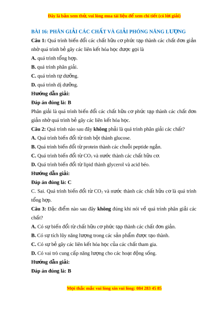 Đây là bản xem th , vu ử i lòng mua tài li u ệ đ xe ể m chi ti t (c ế ó l i ờ gi i ả ) Quá trình phân gi i ả các ch t ấ là quá trình gi i ả phóng năng lư ng ợ cung c p ấ cho các ho t ạ đ ng s ộ ống.