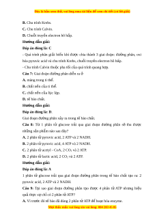 ư actic acid, 2 CO2 và 2 ATP. Hư ng ớ d n gi ẫ i ả : Đáp án đúng là: A 1 phân tư glucose tr i ả qua giai đo n ạ đư ng ờ phân trong tế bào ch t ấ t o ạ ra: 2