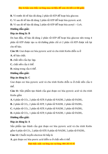 Đây là bản xem th , vu ử i lòng mua tài li u ệ đ xe ể m chi ti t (c ế ó l i ờ gi i ả ) B. Vì trư c đó t ớ bào ế đã dùng 2 phân t ư ATP đ ho ê t ạ hóa glucose.