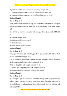 ạ hóa acetyl – CoA. Hư ng d ớ ẫn gi i ả : Đáp án đúng là: B Do ban đ u, â t ế bào đã dùng 2 phân t ư ATP đ ê ho t ạ hóa glucose nên trong 4 phân t ư ATP đư c ợ t o ạ ra t ừ đư ng ờ phân ch icó 2 phân t A ư TP đư c ợ tr ả l i ạ cho t bào. ế Câu 10: Giai đo n oxi ạ