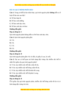 BÀI 19: QUÁ TRÌNH PHÂN BÀO Câu 1: Trong cơ th ê đa bao nhân th c,