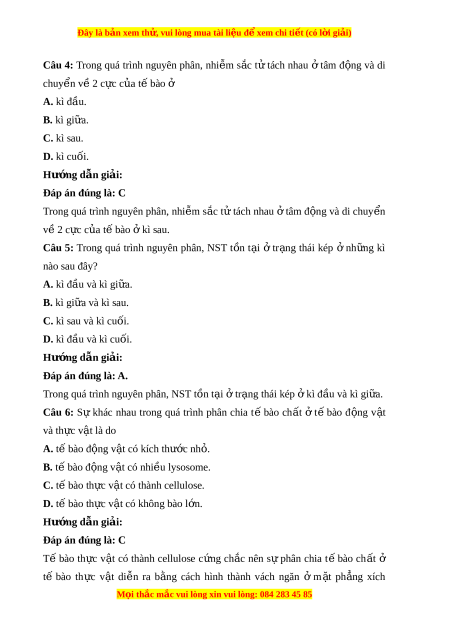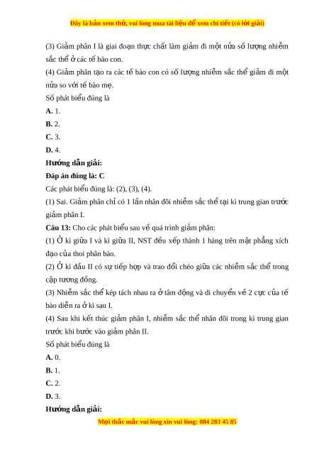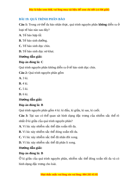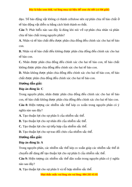 Đây là bản xem th , vu ử i lòng mua tài li u ệ đ xe ể m chi ti t (c ế ó l i ờ gi i ả ) B. T o a thu n l â i ơ cho s nhân đôi ư DNA va nhi m ê săc th . ê C. T o a thu n â l i ơ cho sư ti p ê h p c ơ a nhi u m ê s c ă th . ê D. T o t a hu n â l i ơ cho sư trao đ i ổ chéo c a u nhi m ê s c ă th . ê Hư ng d ớ ẫn gi i ả : Đáp án đúng là: B Hiện tư ng ơ cac nhi m ê s c ă thê dan xo n