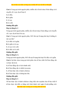Câu 2: Qua trinh nguyên phân g m ồ A. 3 ki. B. 4 ki. C. 5 ki. D. 6 ki. Hư ng ớ d n gi ẫ i ả : Đáp án đúng là: B