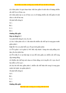 Câu 12: Cho cac phat bi u s ê au v qua t ề rinh gi m ả phân: (1) Gi m ả phân co 2 l n nhân đôi ầ nhi m ê s c t ă h . ê (2) Gi m ả phân co 2 l n phân chi ầ a nhi m ê s c t ă h . ê M i ọ thắc m c