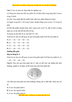 Câu 7: Cho các thao tác th c hi ự n t ệ hí nghi m ệ sau: (1) Dung kim nh n o tách l y â bao ph n â r i ô c ô đ nh i m u ẫ trong dung d ch i Carnoy trong 15 phut. (2) Lây 3 bao phân đ t ă lên phi n kí ế nh, d m ầ bao ph n b â ng ki ă m nh n. o