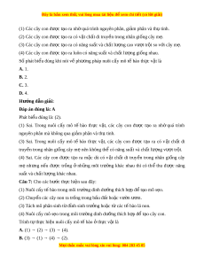 nguyên phân mà không qua gi m ả phân và thụ tinh. (3) Sai. Trong nuôi c y ấ mô t ế bào th c ư v t ậ , các cây con đư c ợ t o ạ ra có v t ậ ch t ấ di truy n t ề rong nhân gi ng cây ố m nên không t ẹ h có năng s ể u t ấ và ch t ấ lư ng v ợ ư t ợ tr i ộ . (4) Sai. Các cây con đư c ợ t o ạ ra m c ặ du có v t ậ ch t ấ di truy n ề trong nhân gi ng ố cây mẹ nh ng ư n u ế đư c ợ tr ng ồ ở nh ng ư môi trư ng ờ khác nhau thì có th ể thu đư c ợ năng suất và chất lư ng ợ khác nhau.