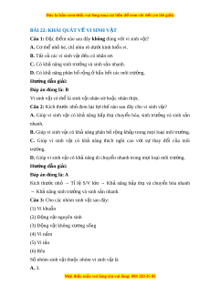 Đây là bản xem th , vu ử i lòng mua tài li u ệ đ xe ể m chi ti t ế (có l i ờ gi i ả ) BÀI 22: KHÁI QUÁT V Ề VI SINH V T Ậ Câu 1: Đặc đi m