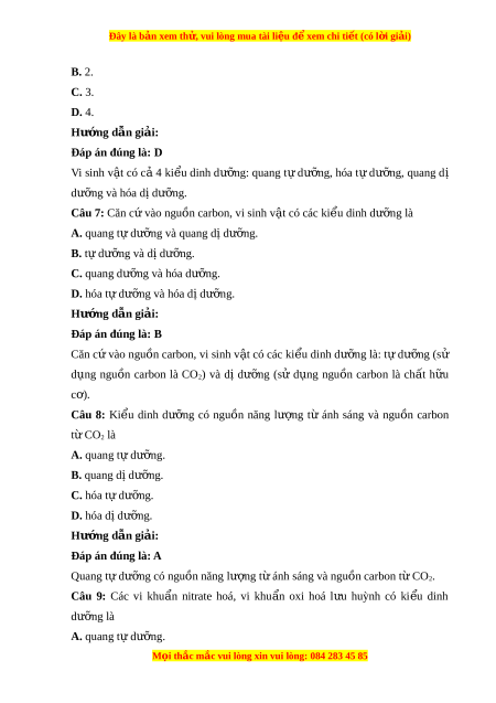 Đây là bản xem th , vu ử i lòng mua tài li u ệ đ xe ể m chi ti t (c ế ó l i ờ gi i ả ) B. quang dị dư ng. ỡ C. hóa tự dư ng. ỡ D. hóa dị dư ng. ỡ Hư ng d ớ ẫn gi i ả : Đáp án đúng là: C Các vi khu n ẩ nitrate hoá, vi khu n ẩ oxi hoá l u ư huỳnh thu c ộ ki u ể dinh dư ng ỡ là hóa t d ự ư ng. ỡ