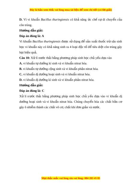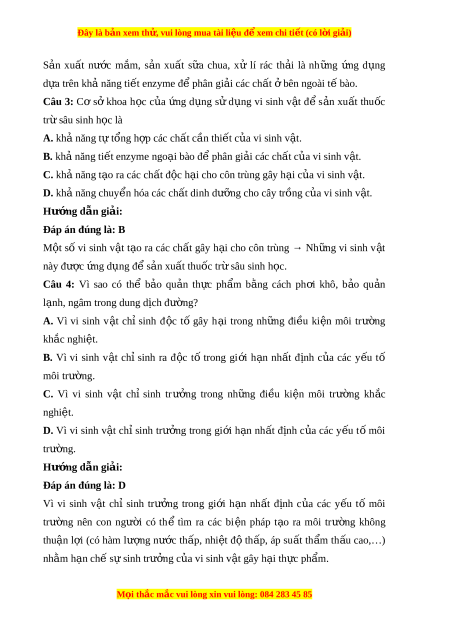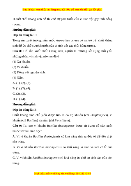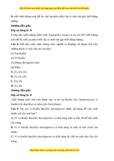 Đây là bản xem th , vu ử i lòng mua tài li u ệ đ xe ể m chi ti t (c ế ó l i ờ gi i ả ) D. ti t ê ch t â khang sinh đ ê c ư ch ê s ư phat tri n ê c a u vi sinh v t â gây th i ô h ng o tư ng. ơ Hư ng d ớ ẫn gi i ả : Đáp án đúng là: D Trong s n a xu t â tư ng, ơ n m â m c