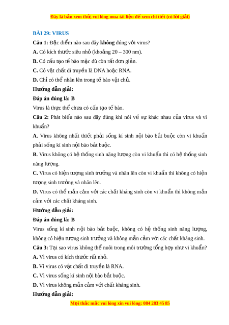 Đây là bản xem th , vu ử i lòng mua tài li u ệ đ xe ể m chi ti t ế (có l i ờ gi i ả ) BÀI 29: VIRUS Câu 1: Đặc đi m