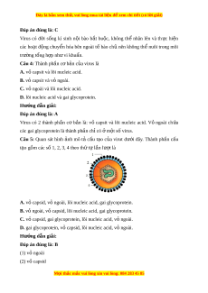 sid, loi nucleic acid, v ngoài ỏ . Hư ng d ớ ẫn gi i ả : Đáp án đúng là: B (1) vỏ ngoài (2) vỏ capsid M i ọ thắc m c