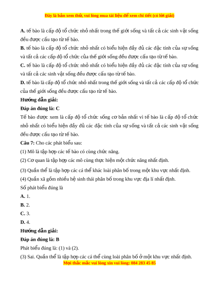 Đây là bản xem th , vu ử i lòng mua tài li u ệ đ xe ể m chi ti t (c ế ó l i ờ gi i ả ) A. t ế bao la c p ấ đ ộ t ổ ch c ứ nh o nh t ấ trong th ế gi i ớ s ng ố va t t ấ c a các sinh v t â s ng ố đ u đ ề ư c c ơ ấu t o t a t ư bao. ế B. t ế bao la c p ấ đ ộ t ổ ch c ứ nh o nh t ấ co bi u ể hi n ê đ y ầ đ ủ các đ c ă tinh c a ủ s ư s ng ố