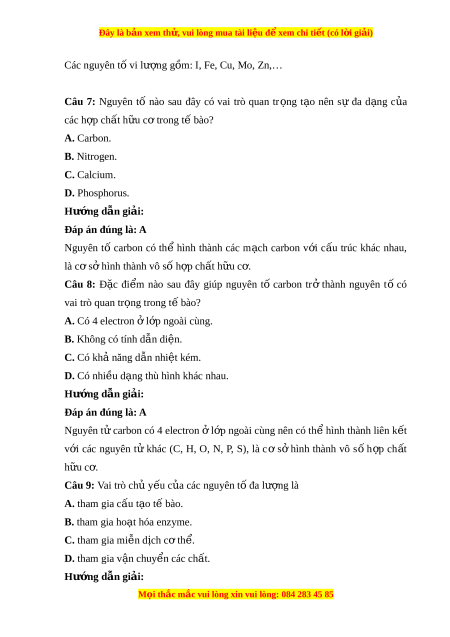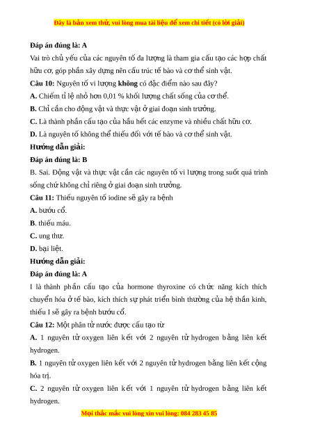 Đây là bản xem th , vu ử i lòng mua tài li u ệ đ xe ể m chi ti t ế (có l i ờ gi i ả ) Cac nguyên tố vi lư ng ơ g m ô : I, Fe, Cu, Mo, Zn,…