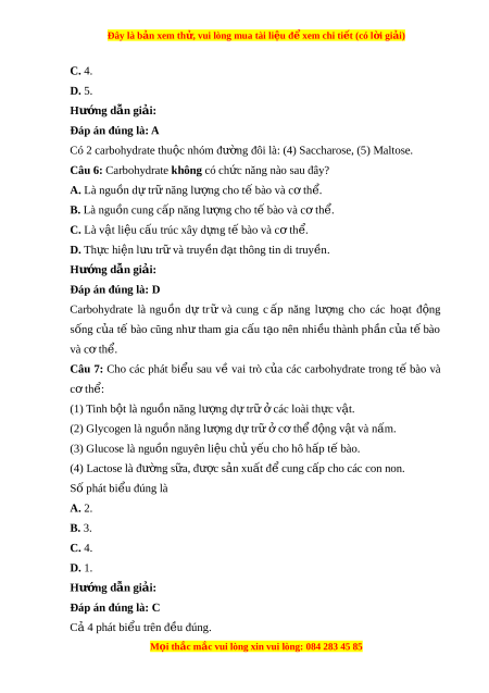 Đây là bản xem th , vu ử i lòng mua tài li u ệ đ xe ể m chi ti t ế (có l i ờ gi i ả ) C. 4. D. 5. Hư ng ớ d n gi ẫ i ả : Đáp án đúng là: A Có 2 carbohydrate thu c nhóm ộ đư ng