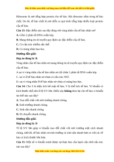 ể soat cac chât ra vao t bao. ê Hư ng d ớ ẫn gi i ả : Đáp án đúng là: A Lông (nhung mao) co ch c ư năng giúp vi khu n â bam trên bê m t ặ tê bao ho c ặ cac b m ê t ặ khac. Câu 12: T ê bao ch t â la n i ơ di n ê ra qua trinh t ng ô h p ơ nhi u ê lo i a protein c a u t bao ê vi A. t bao ê chât co ch a nhi ư u r ê ibosome. B. t bao ch ê ât co ch a ư nhi u ê ch t â vô c . ơ C. t bao ê chât co ch a nhi ư u ch ê ât h u c ư . ơ D. t bao ê chât co ch a nhi ư u n ê ư c. ớ Hư ng d ớ ẫn gi i ả :