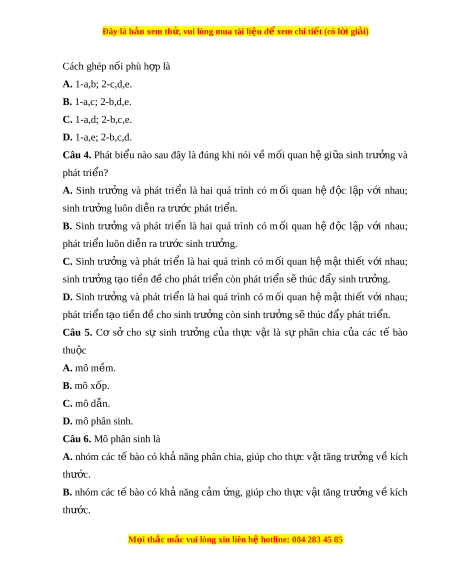 Đây là bản xem th , vu ử i lòng mua tài li u ệ đ xe ể m chi ti t (c ế ó l i ờ gi i ả ) Cách ghép nối phù h p ợ là A. 1-a,b; 2-c,d,e. B. 1-a,c; 2-b,d,e. C. 1-a,d; 2-b,c,e. D. 1-a,e; 2-b,c,d. Câu 4. Phát bi u