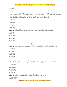 ố = 3,1415926… đ n hàng ph ế n nghì ầ n là A. 3,14; B. 3,142; C. 3,1416; D. 3,141. 8 Câu 12. Cho giá tr g ị ần đúng c a