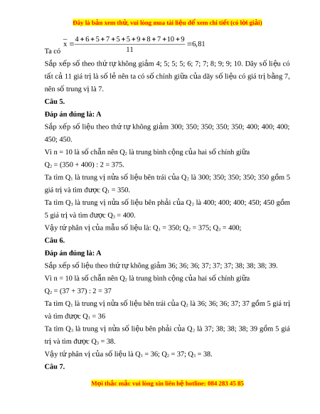 Ta có giá trị 5 xuất hi n nhi ệ u nh ề ất trong m u s ẫ l ố i u t ệ rên. V y m ậ t ố b ng 5 ằ Câu 4. Đáp án đúng là: D M i