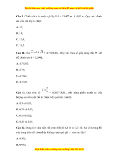Câu 9. Chi u dài c a m t s i dây là l = 13,455 m ề ủ ộ ợ ± 0,02 m. Quy tròn chi uề