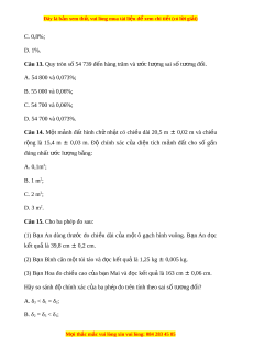 Câu 15. Cho ba phép đo sau: (1) B n ạ An dùng thư c ớ đo chi u ề dài c a ủ m t ộ ô g ch ạ hình vuông. B n ạ An đ c ọ k t
