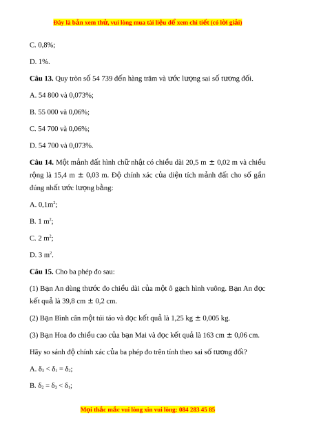 Câu 13. Quy tròn s 54 739 đ n hàng trăm và c l ng sai s t ng đ i.ố ế ướ ượ ố ươ ố