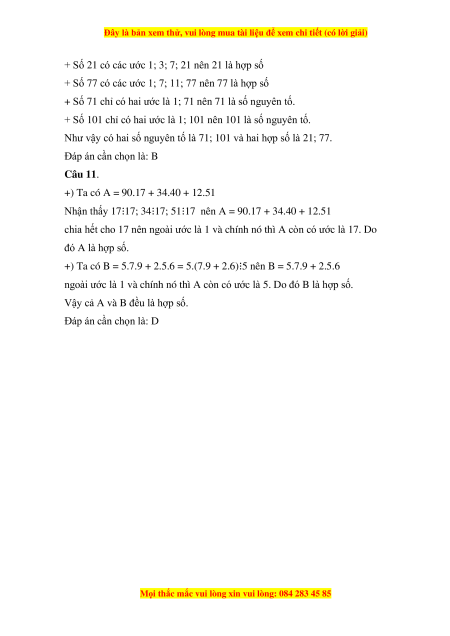 phải là các số nguyên tố. Đáp án cần chọn là: B Câu 4.