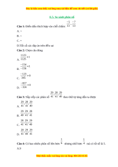 D.Tất cả các đáp án trên đ u s ề ai Câu 2: Ch n ọ câu đúng 1123 1 A. 1125 154 1 B. 156 123 0 C. 345 657 0 D. 324 29 28 29 ; ; Câu 3: S p ắ x p các phân s ế ố 41 41 40 theo th t