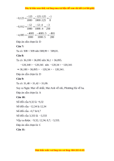 −0,125 =…; −0,012 =...; −4,005 =... 1 3 4005 ; ; A. 8 250 1000 1 3 801 ; ; B. 8 25 200 1 3 801 ; ; C. 4 250 200 1 3 801 ; ; D. 8 250 200 Câu 7: Đi n d ề